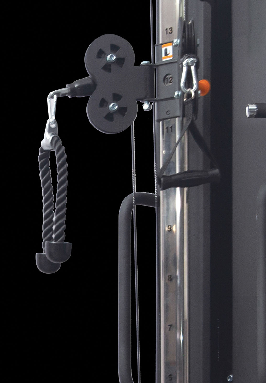 Caratteristiche: SISTEMA DI CARRUCOLE con cuscinetti POWER GRADE per garantire uno scorrimento preciso e progressivo. Cavi in acciaio rivestiti in poliuretano. PACCO PESI 2x70 kg in acciaio. Carter di protezione integrale. Dotazione: coppia maniglie pulley, corda doppia per tricipiti, barra tricipiti dritta. OPTIONAL 2x COD. W-STACKCSX2-6 pacco pesi addizionale 2x30 kg. ACCESSORIO OPTIONAL cod. CROSS-BARCSX2000 Cross bar di collegamento da utilizzare tra 2 single pulley CSX2000 per comporre la cable crossover CSX-6000. Dimensioni 96 x 100 x 22,6 cm. CONFIGURAZIONE CABLE CROSSOVER: 2 x cod. CSX2000 + 1 x cod. CROSS-BARCSX2000