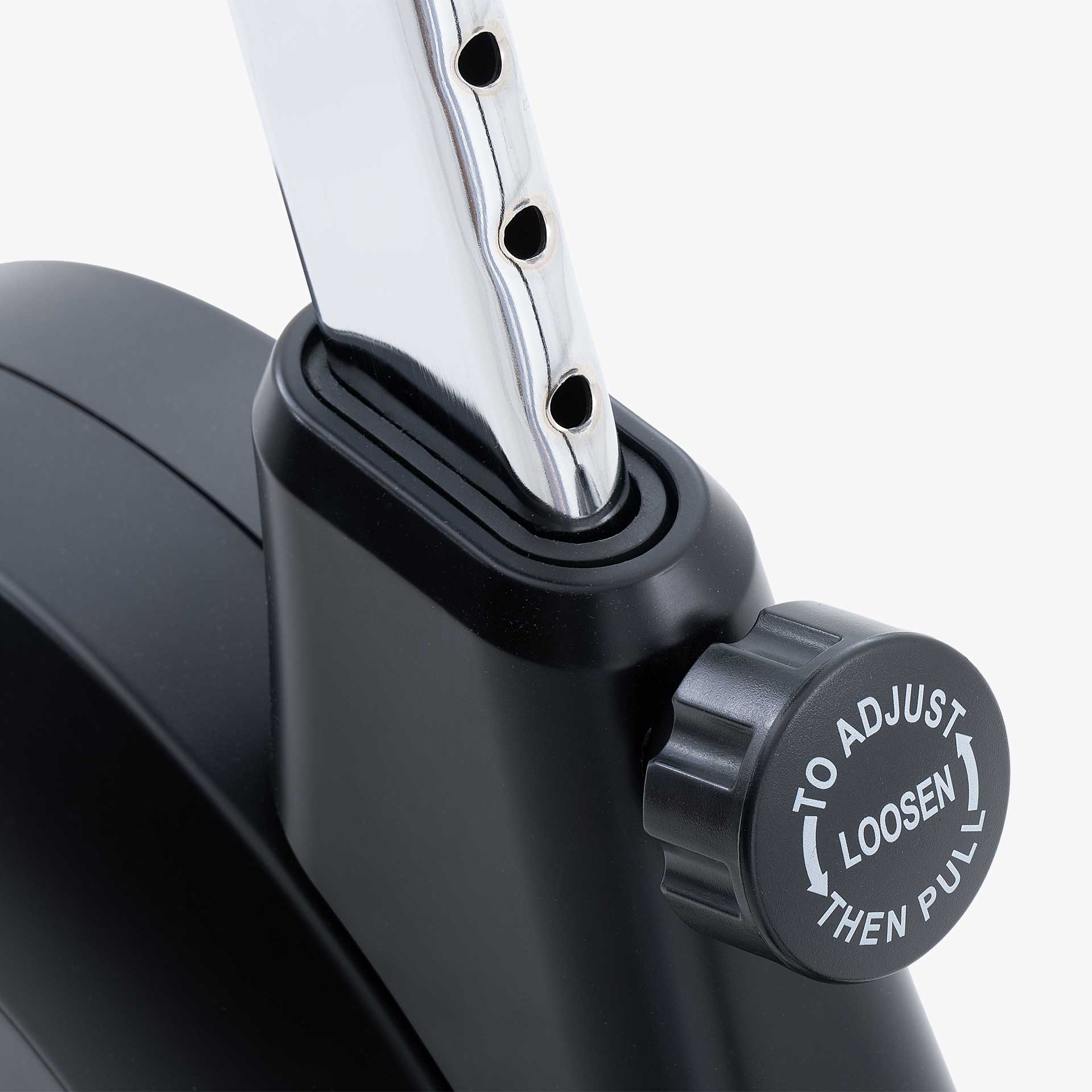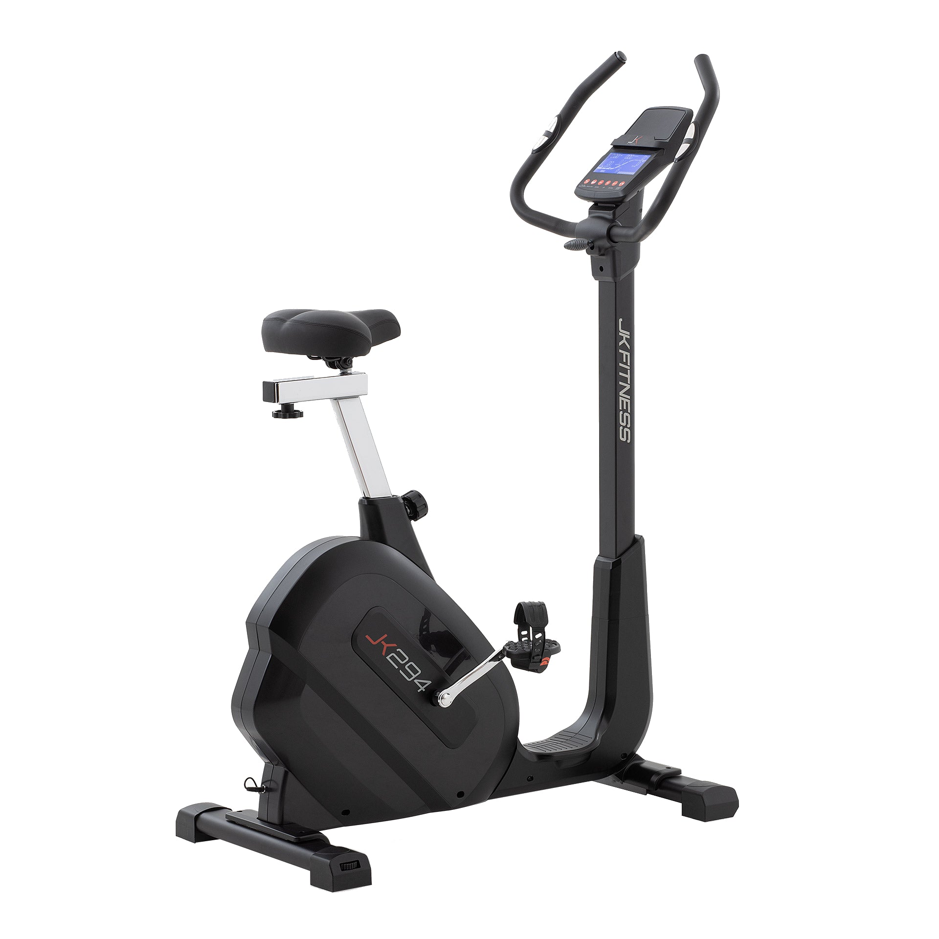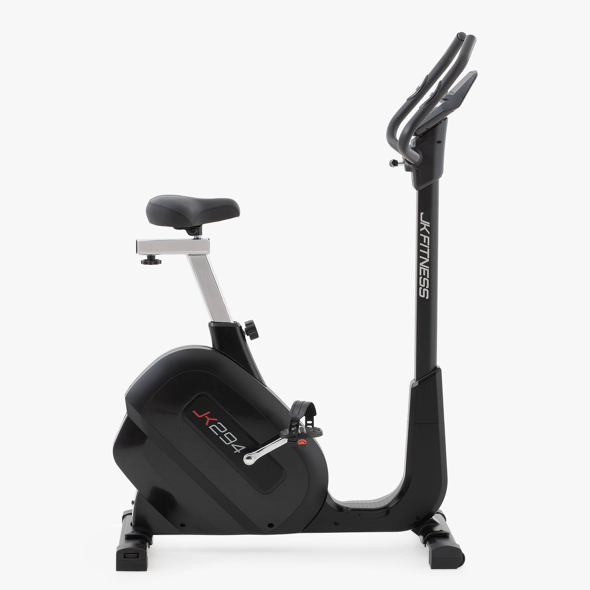 La cyclette JK 294 grazie alle ampie regolazioni permette di ospitare a bordo persone molto alte; i dati della regolazione in altezza della sella su 9 posizioni (misura della gamba da 74,5 cm a 97,5 cm) e in profondità 9 cm confermano questa ottima capacità. Manubrio regolabile in profondità e inclinazione, per permettere a ogni utilizzatore di trovare la corretta posizione di esercizio una volta salito sulla cyclette JK 294. La sella ergonomica è molto comoda, con una imbottitura a compressione graduata che aiuta e mantenere la corretta posizione in sella per lunghe pedalate, garantendo piacevoli allenamenti cardio in pieno comfort. Il pedale antiscivolo autolivellante con cinghietto ferma piede aiuta a mantenere la corretta posizione del piede e della gamba in tutte le fasi dell’esercizio.
