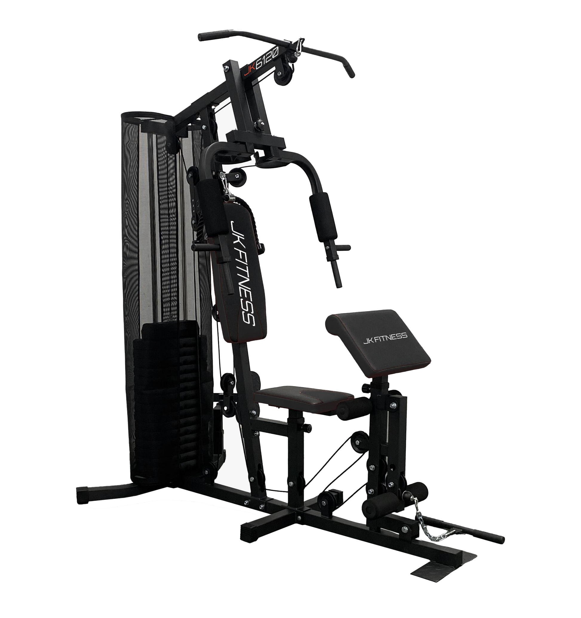 Caratteristiche: cavi di trazione in acciaio Ø 5 mm con rivestimento poliuretano, chest/butterfly con multi-impugnature ergonomiche antiscivolo, sedile regolabile in altezza su 3 posizioni, rulli supporto ginocchia/caviglie Ø 10 cm, sezione leg-press frontale, porta cuscino scott posteriore, sistema di carrucole in PU Ø 9 cm con cuscinetti ad alta scorrevolezza