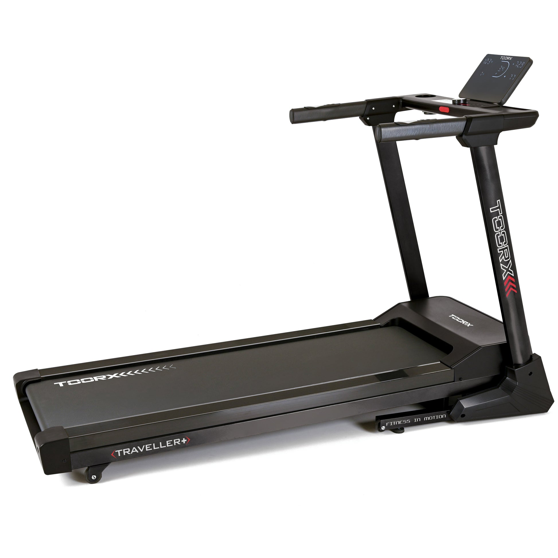 Console: 5 display LED bianchi. Informazioni: velocità, inclinazione, frequenza cardiaca, distanza, tempo, consumo calorico